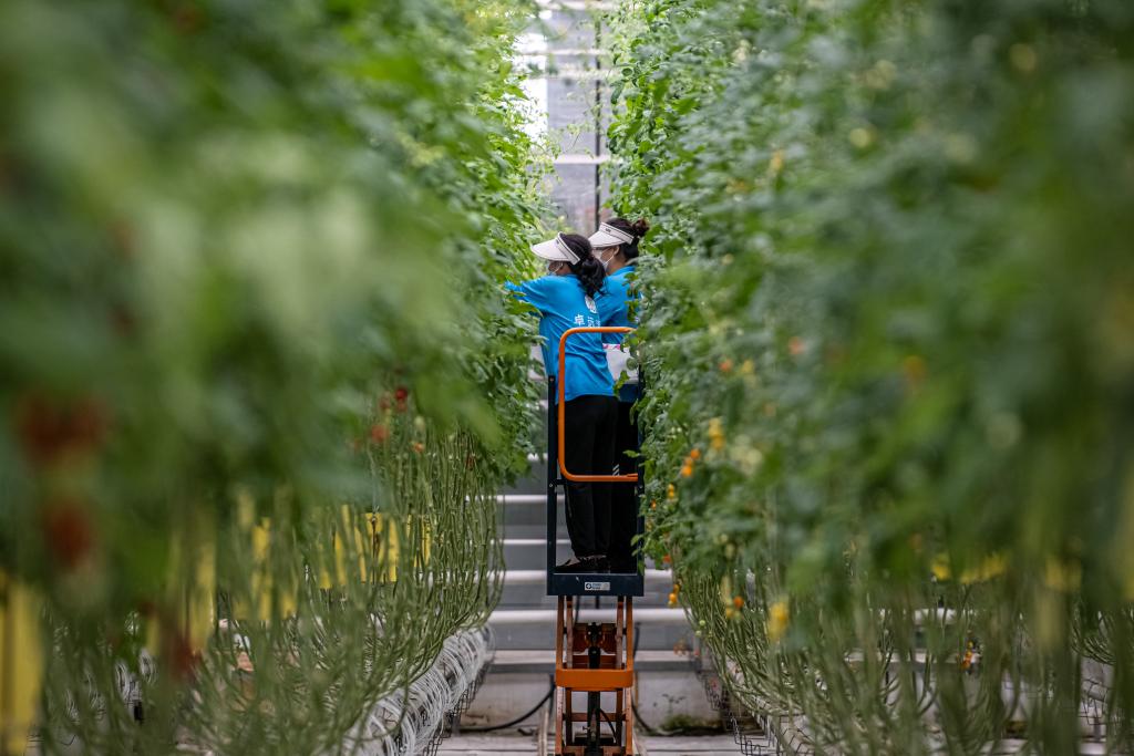 正在卓远农业成长无限公司的“动物工场”内,员工正正在采摘成熟的生果番茄(7月15日摄)。一个个圆形蓄水池构成水产养殖区。这里有柳根鱼、瓦氏雅罗鱼、西伯利亚鲟、黄金鲫、小龙虾、青虾、南美对虾……来自多地的水产物别离“栖身”正在分歧池内。
